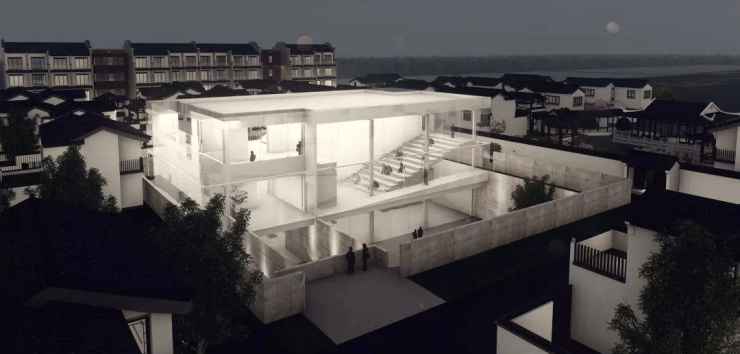 而何多苓老师亲自为成都院坝设计的这座“邻里中心”,在乖巧的院坝之中嵌入了一个方形单体的玻璃建筑,与传统院坝的青瓦形成对比,但完全不突兀,就像是两个时代在低语对话。