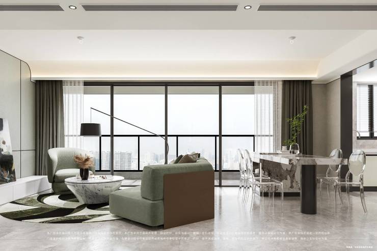 室内的LDKB空间,形成了面积约48㎡的超级公区,使用感接近180㎡的大平层,同时也带来了270°的环幕景观视野。