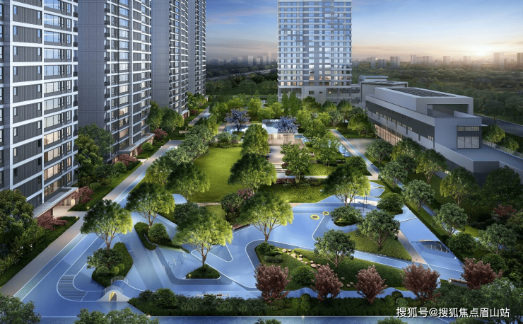 项目园林规划“一轴两园八景八境”,约170mX70m敞阔空间,相当于8个标准足球场大小,运动、社交、娱乐、景观……,生态围合,移步异景,诗意雅居。