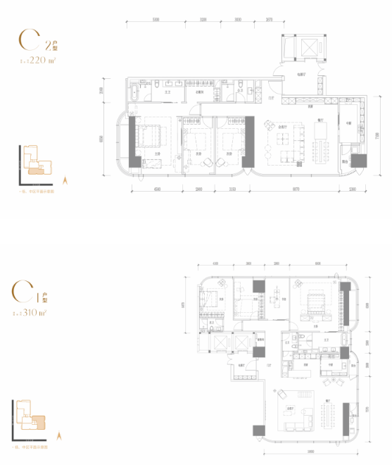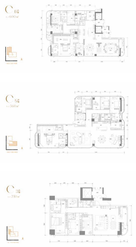 项目主力产品为建面约224㎡至600㎡的云端大平层,以清水状态交付,为顶级客群预留充分的个性化定制空间。所有户型均以最大化城市景观视野为核心,以宏大尺度承载塔尖家族的居住、社交与收藏梦想。