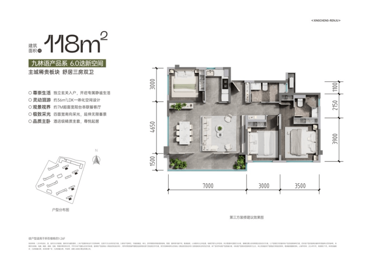 约7M超面宽阳台;近36㎡双面采光横厅;酒店级精质主套