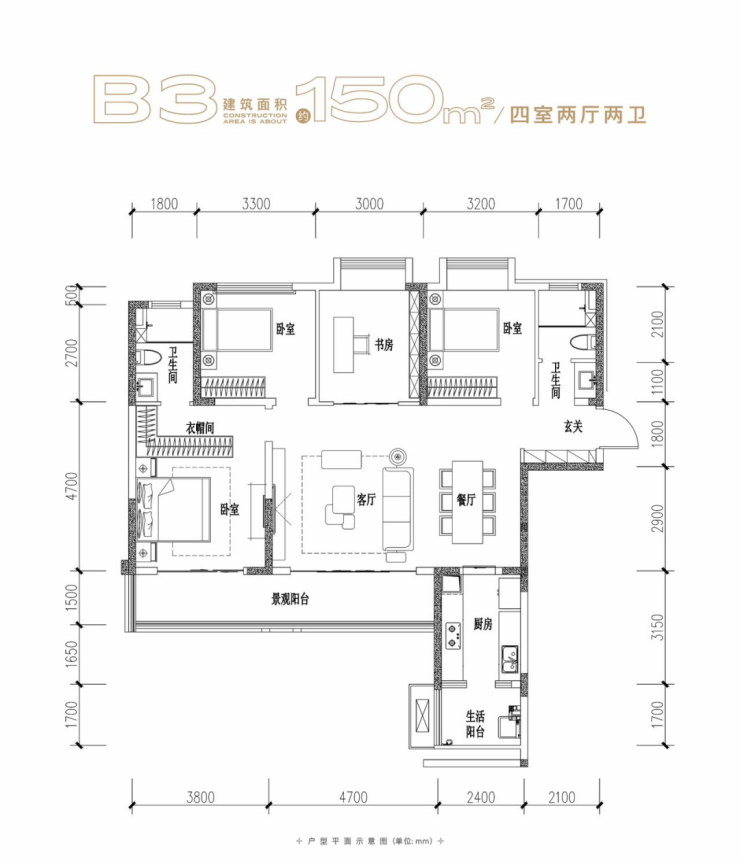 ☆B2 建筑面积约134㎡ 三室两厅两卫