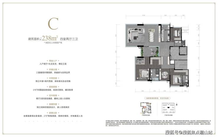 同时楼王单元全系架空,植入私宴、会客等功能后,形成半岛花园里的超级会客厅。