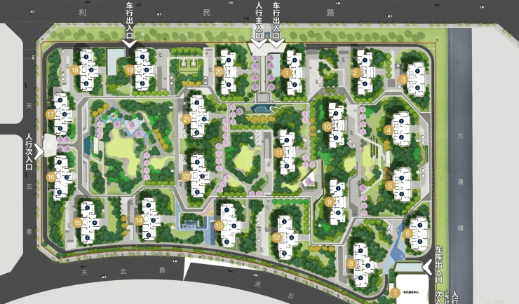 【生态资源】凤凰山体育公园、水之心、悦动之心、蓉漂人才公园、汇智颐年公园四大主题公园环伺周围,方圆千亩范围只此天湖岸生态住区。