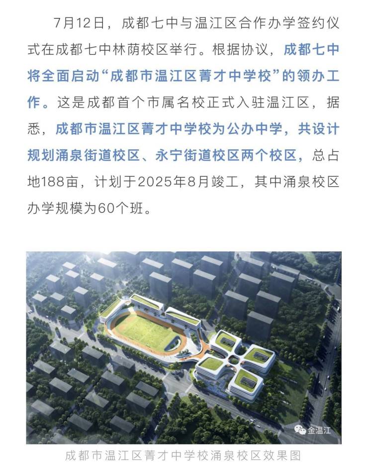 四、「极」智慧温江第一学区房温江第一教育资源汇聚于此,川师/成都七中已入驻,川师附小/中24年9月开学无学区不流通,无学区无金融属性。同时也会配建有一所18班的公立幼儿园,将会是温江最好的公立幼儿园。