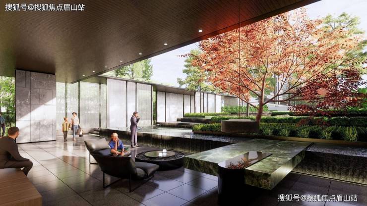 中轴之上,以台地为依托,构筑一幅立体风景画卷,俯仰之间,山水谧境与超引会客厅相互交织,营造一处似真似幻的空中休憩空间。或晚霞染林、或华灯初上、或得意时节,知己好友聚于山谷之巅,几盏清茶小酌,一面以景涤心,一面以茶陶情,或畅谈时下趣闻,互相点拨启发,人生路可能会更宽阔。