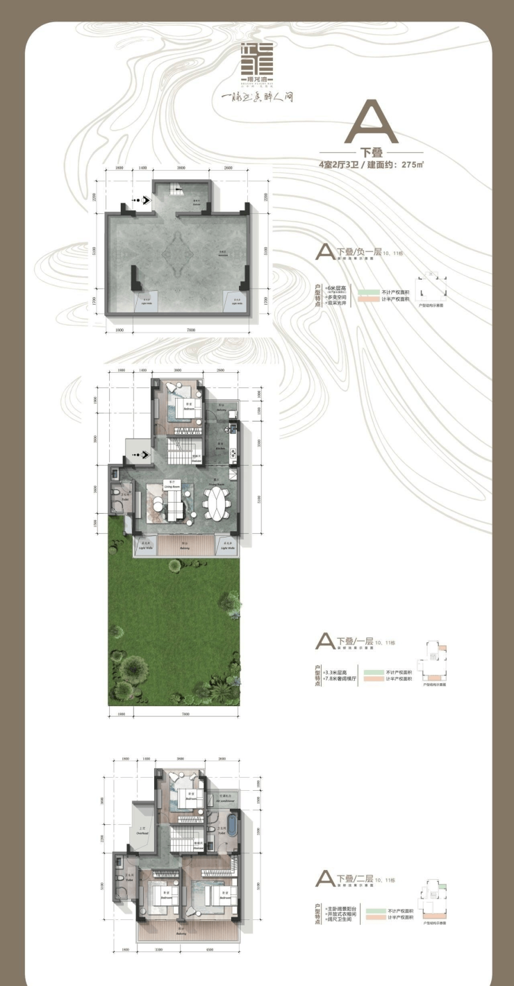 【基本信息】 总占地面积:42亩,容积率:1.5,绿化率:35%,总户数:184,物业费:4.9元/㎡,楼层总高:6+1,3,交付标准: 清水交付,交房时间: 预计2023年12月31日,产品面积:A户型 建面约235㎡~271㎡;B户型 建面约237㎡~284㎡;C户型 建面约209㎡~269㎡;E户型 建面约410㎡~470㎡