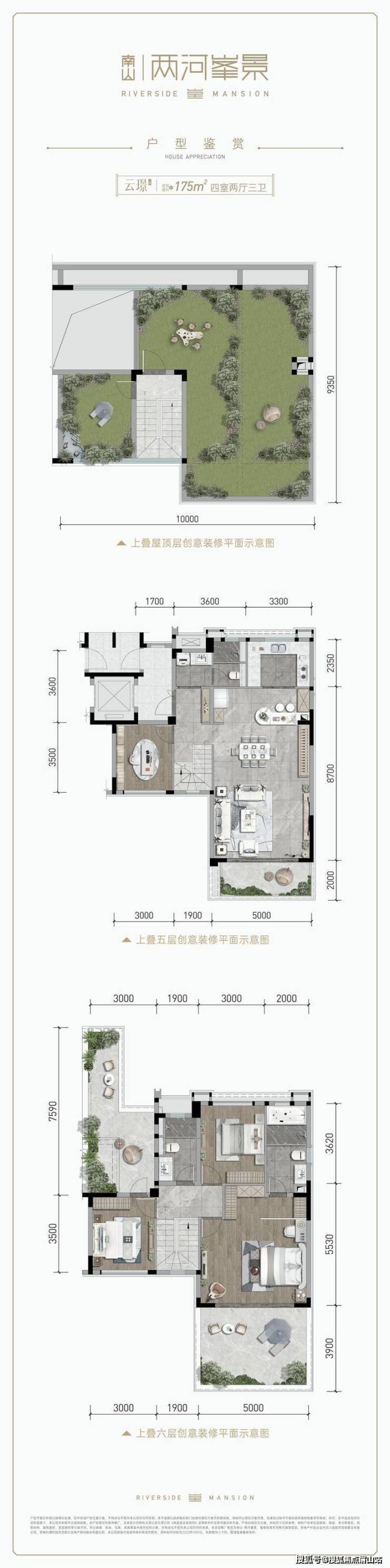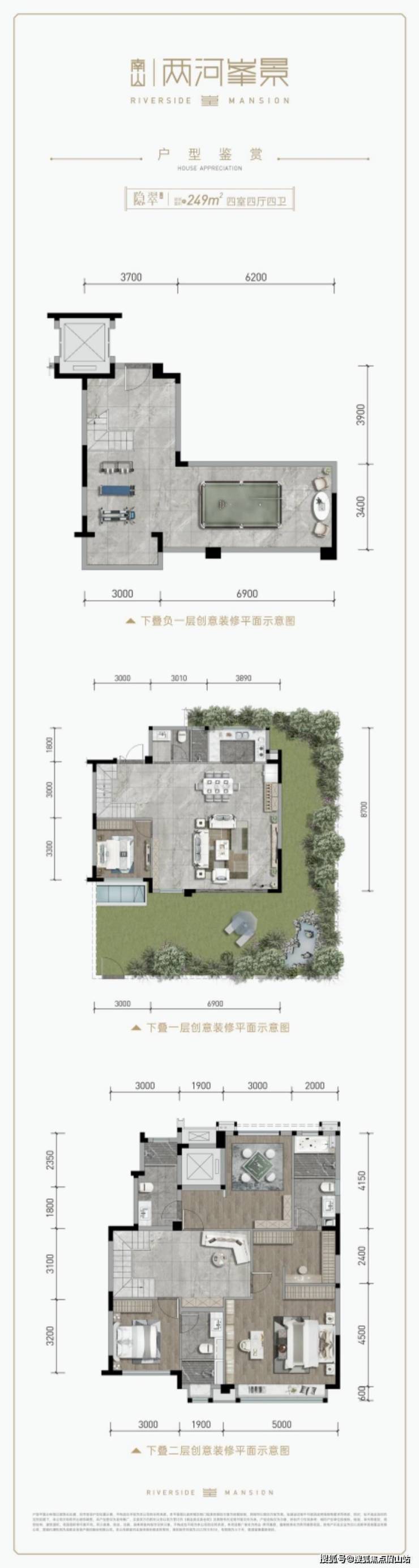 ②叠拼:上175㎡ 4室2厅3卫屋顶花园中247㎡ 4室3厅4卫后花园下249㎡ 4室4厅4卫前花园中下叠带地下室5.4米(47-52平米)