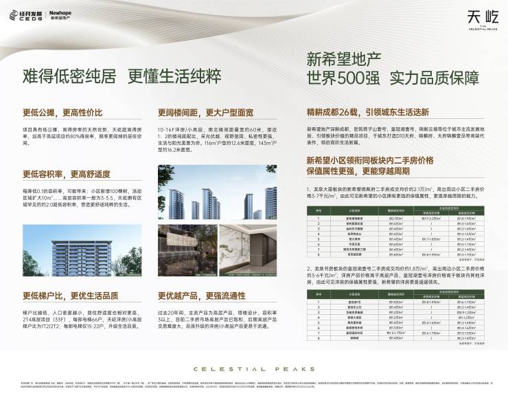 【新希望地产】精致绿色,让生活更美好世界500强品质,城东品质舒居缔造者新希望集团,2021年荣登世界500强榜单,2024年排名378位。新希望地产为百强房企TOP30,聚焦城市“中高端”住宅产品开发,以天系、锦系享誉全国。于成都龙泉,皇冠湖壹号、锦粼府、锦粼云境、长粼府,以高阶产品力赢得市场的高度认可。