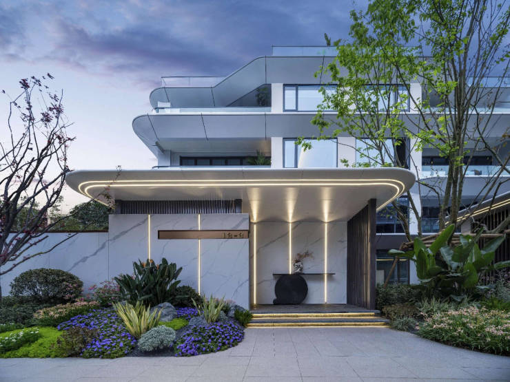 外墙打破传统,全采用铝板作为主要材料,相对传统真实漆,铝板造价成本更高,且美观度更为精致,体现出了简洁大气,更现代化的风格。