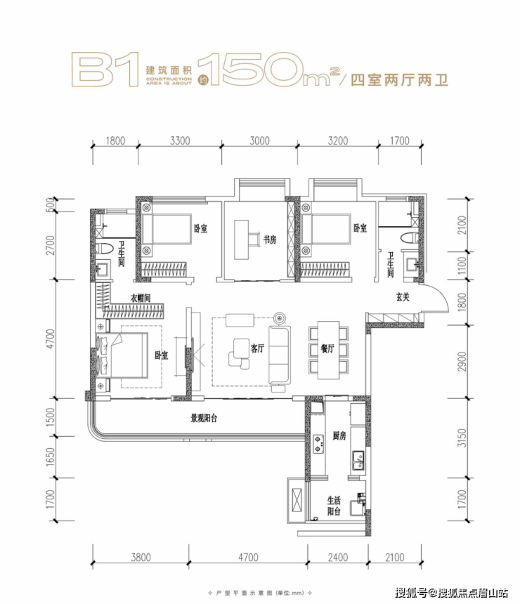 约4.2米宽境尺度客厅,贯连约7.8米南向景观阳台
