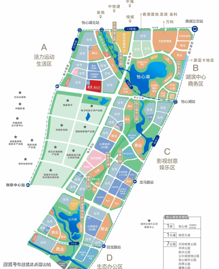 占地约398亩蔚蓝湖滨城的产业规划设计是美国WATG,这家世界知名设计公司,以全球化眼光,为怡心湖规划出独一无二更为开放和复合的艺术城市空间。环绕怡心湖,建筑体量约120万平米。规划涵盖湖滨商业、蔚蓝湖滨1号、阿丽拉Alila酒店、凯悦尚萃Hyatt Centric酒店、湖滨艺术中心等丰富业态。创智科技产业园2号地块,由空港置业牵头,规划引进大型商购中心,目前正积极接洽包括万达、华润、银泰、合生、伊藤等商业公司。
