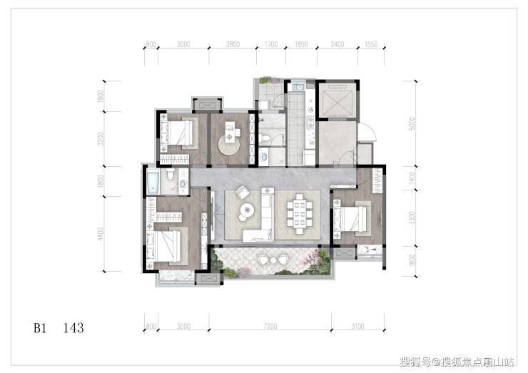 【小高层-建面约143㎡——四室两厅两卫】可变式独梯入户空间,尊享私密便捷的出行节奏超过14m独立采光面,约7.2m港式宽厅尺度罕有约1.8m阳台进深,拓展生活方式的多样可能约5米厨房连接生活阳台,提供多重分区,烹饪时光更自在套房式主卧搭配独立卫浴间,品味生活的私密独立