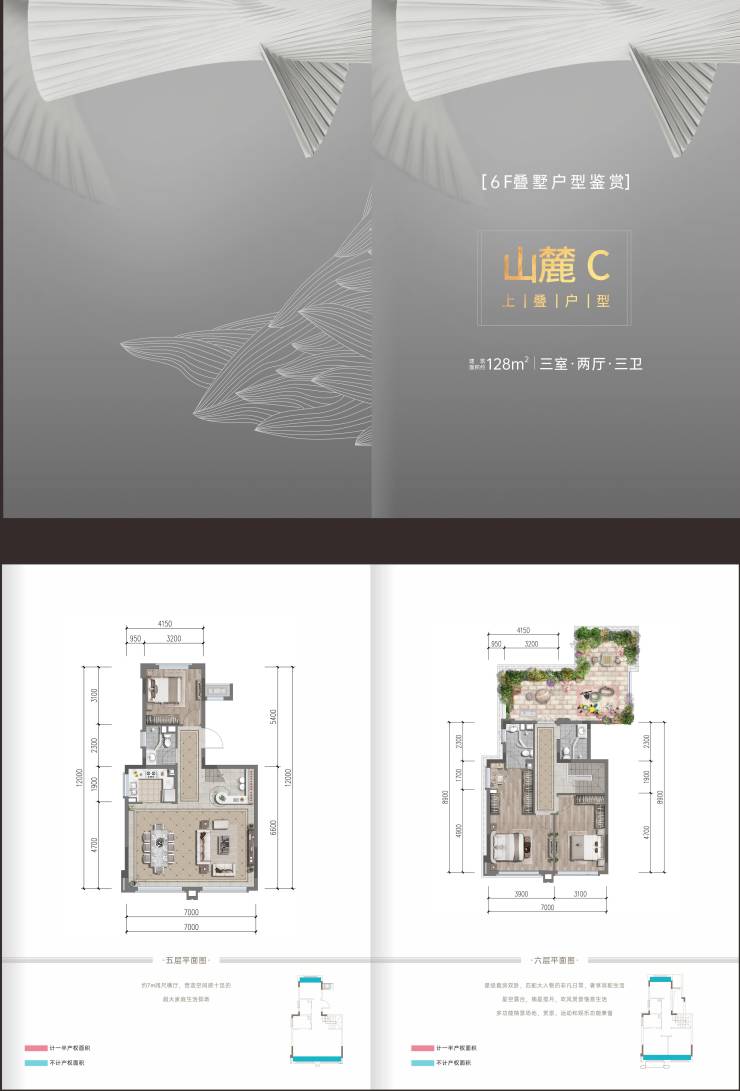 6F山麓C(上叠) 建面约128㎡ 三室两厅三卫