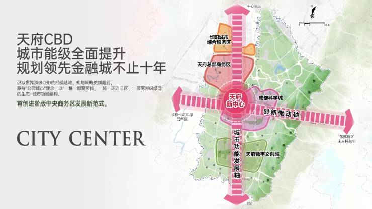 世界级的中央商务区CBD,追随成都向南发展走向,择址天府新区主战场“世界级”的天府CBD规划面积达28.6平方公里,布局总部经济、会展博览、国际交往和生态公园四大板块。不仅是天府新区的几何中心,也是成都的城市新中心,定位为世界级中央商务区。