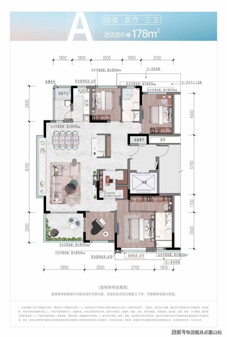项目概况开发商:成都轨道交通集团位置:金牛区北部新城-地铁5#幸福桥站总占地:一体化设计范围700亩 二期占地:64亩物业类别:纯住宅70年总户数:624户总层高:12-17F(一楼4.5米架空层无住宅)布局:两梯两户板式通透、户户对中庭交付标准:清水洋房交房时间:2024年容积率:2.0绿化率:52%停车位:1:1.6物业公司:成都轨道万科物业有限公司物管费:3.8元