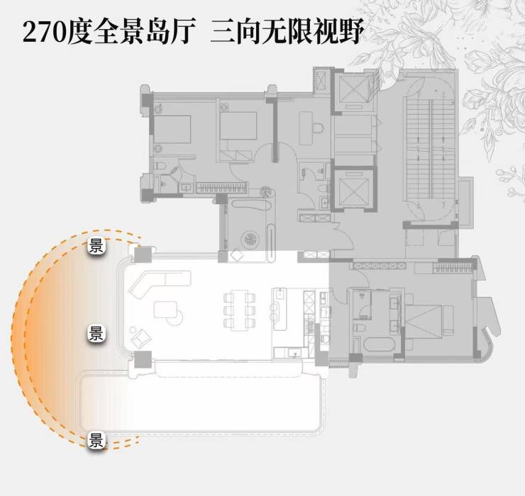 全景式X空间,拥抱生活的多元可能户型中精心规划了全景式X空间,这是一个充满想象力的多功能弹性区域。它可能拥有极佳的采光和视野,您可以根据需求将其打造为面对风景的家居办公区、宁静的茶室、或专属的健身空间,完美适配塔尖圈层多样化的生活方式与精神追求。