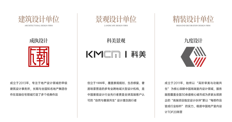 远达・天著源境联袂三大知名机构:甲级建筑设计事务所成执设计(曾获意大利设计奖A‘Design Awards 铂金奖、美国IDA年度最佳建筑设计奖等国际设计大奖)、25载景观先行者科美景观(中国景观设计行业先行者之一、践行 “自然与奢居共生”)、中国地产室内设计TOP20的成都九度设计(深耕高端领域,服务项目遍及中国30多个城市),以极致美学与深度洞察,匠造时代地标级奢宅,敬献城市高净值人群的收藏级人居范本。