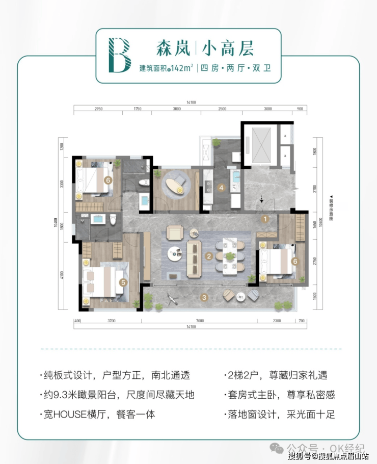 建面约142㎡板式瞰景小高 四房两厅双卫
