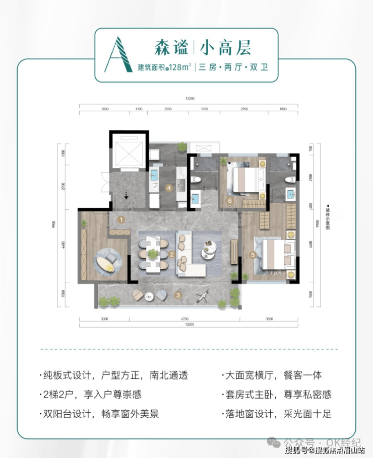 建面约128㎡板式瞰景小高 三房两厅双卫
