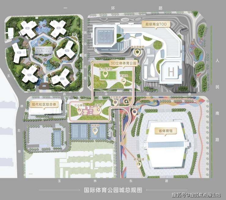 国际体育公园城总占地180余亩,计划总投资45亿元,是2023重要城市地标级更新项目,涵盖四大板块。