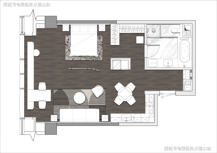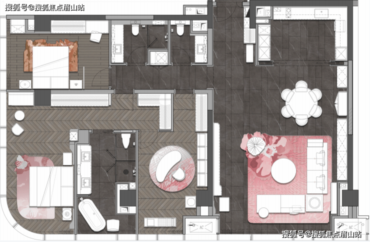 D户型居其——戴昆设计,汲取芙蓉花灵感,打造室内精装,在点题芙蓉花的基础上,突出与新国潮理念的融合,使之兼具现代与未来感