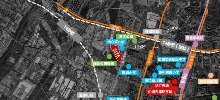 双地铁:地铁19号线(温江山站直线距离约1.4KM),地铁5号线(警官学院站直线距离约2.3km),未来规划地铁14号线&地铁20号线从项目附近经过