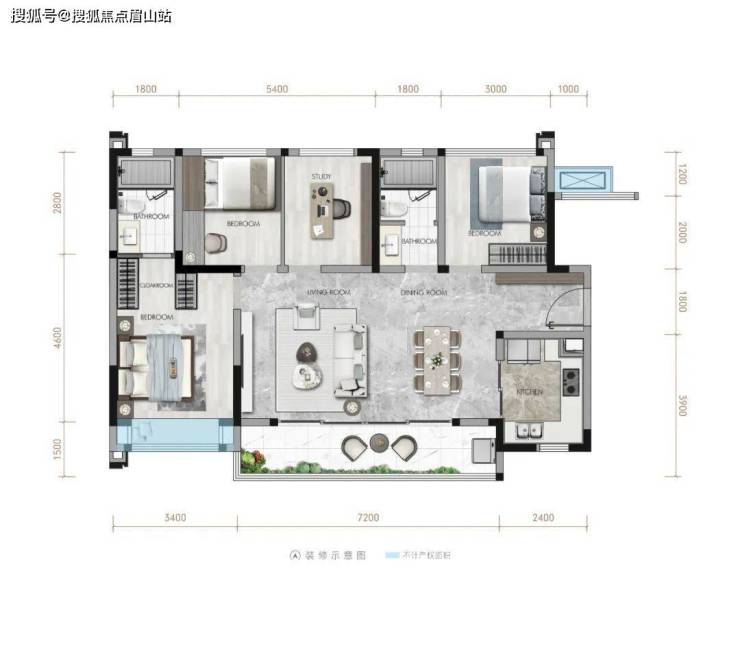 三室两厅的设计可以满足多孩家庭,同时也能满足每个人都有独属于自己的私密空间。