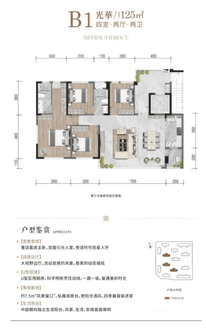 建面约125㎡平层