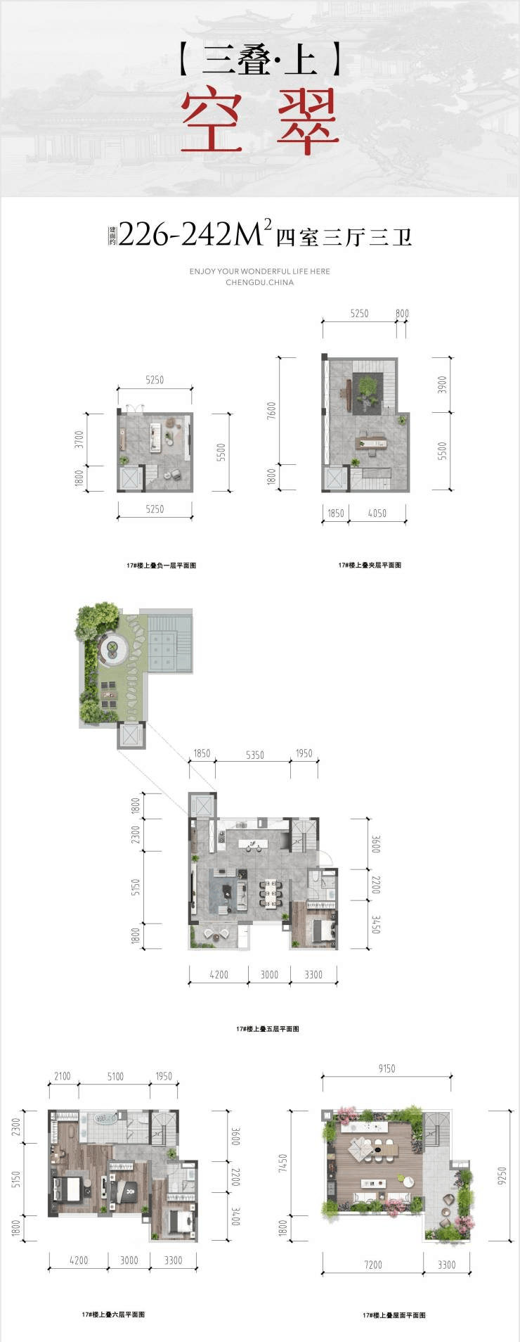 【三叠】上叠 四室两厅三卫 | 约226-242㎡
