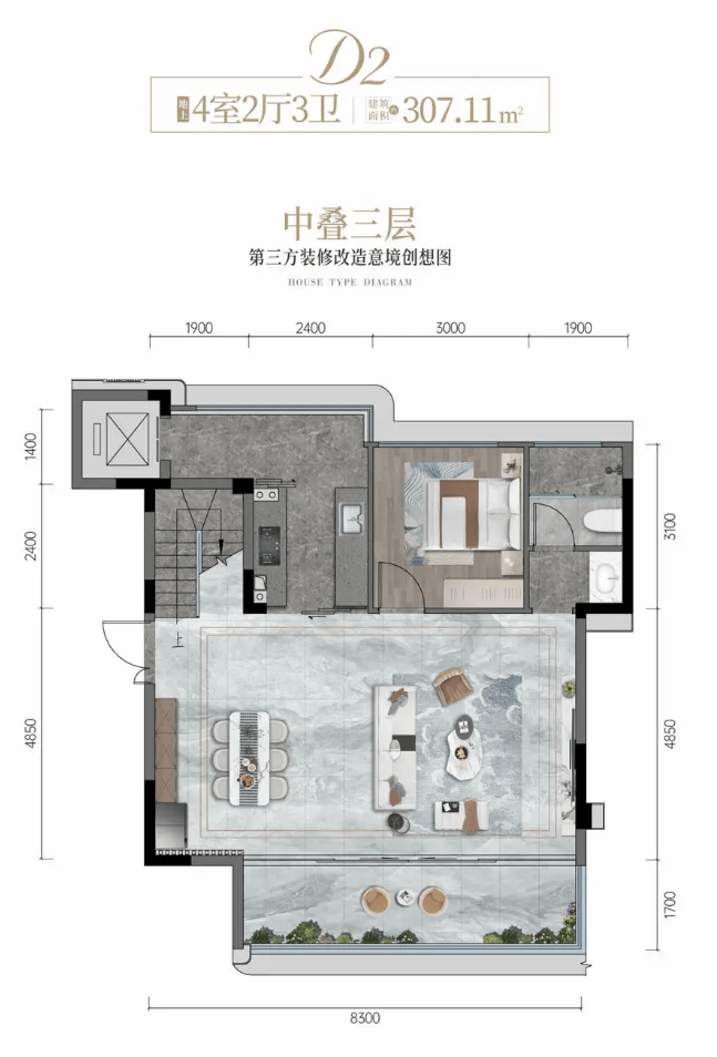 天府壹号院的户型设计,是其“生活哲学”的集中体现,创新性地提出了 “四维生活空间” 垂直规划理念。