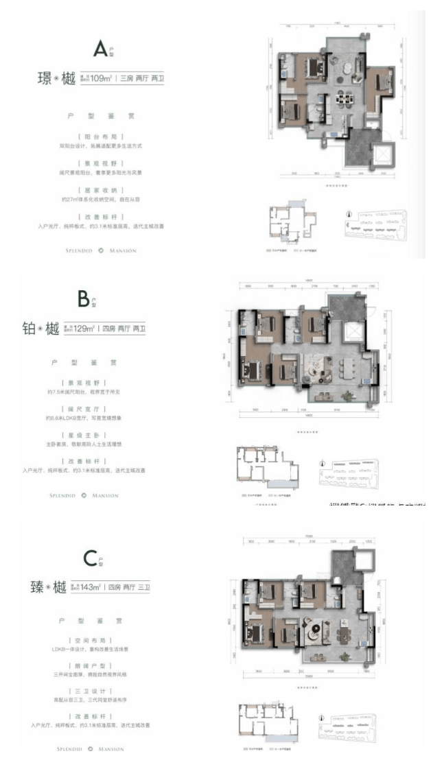 04 主力户型解析—— 109-143㎡全功能精装户型,满足多代家庭品质改善需求