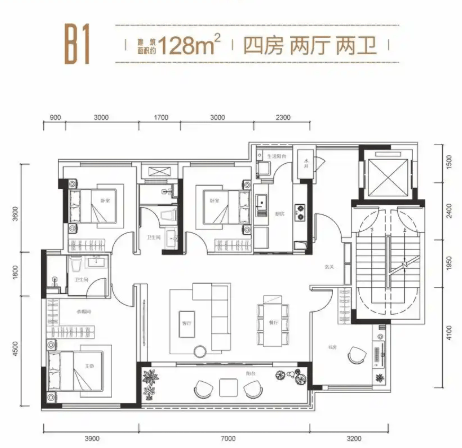 建面约128㎡ 奢阔性四房双卫