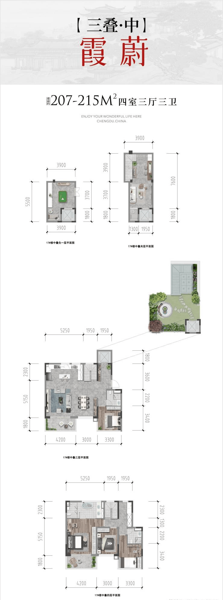【三叠】中叠 四室两厅三卫 | 约207-215㎡