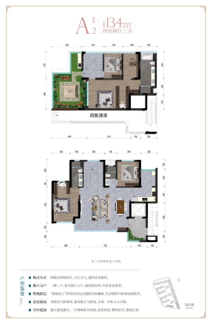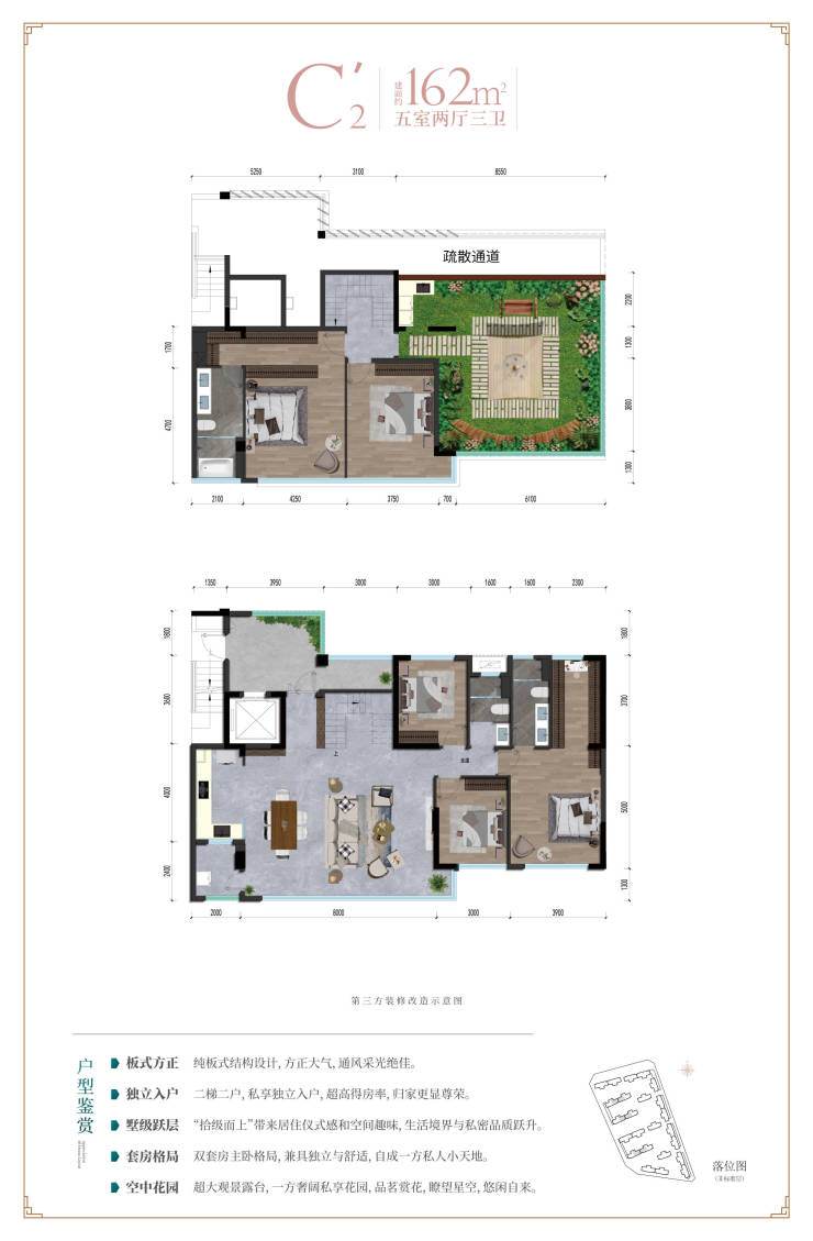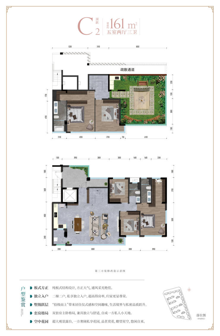 【户 型】:标准层:约104㎡丨126㎡丨137㎡精装 顶跃:约161㎡(带屋顶露台)