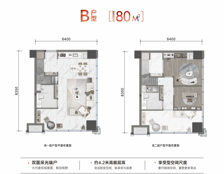 主力户型:4.2米跃变公馆 建面约50-60-80㎡