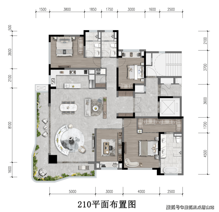 套型:四室两厅两卫(170)、四室两厅三卫(190/210)