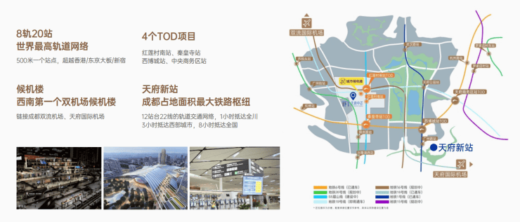 购买理由三:天府中芯双TOD,购物中心上方覆盖,以及城市候机楼公寓。
