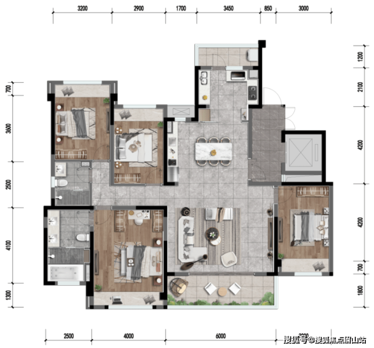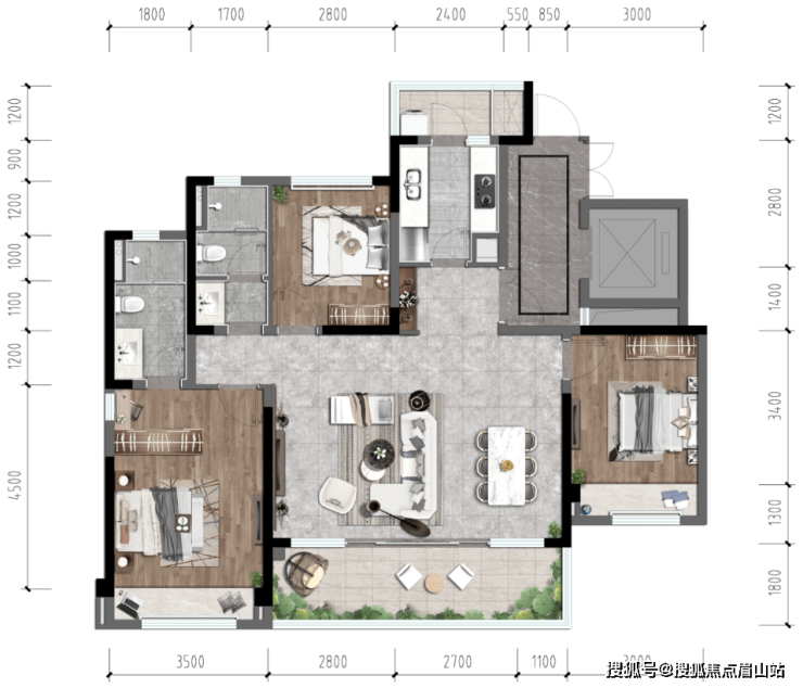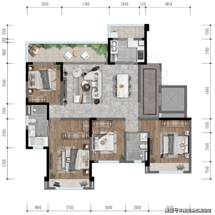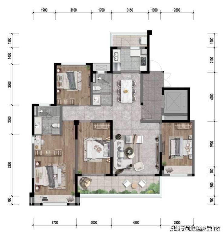 177㎡套四双卫户型【板式大平层】·【大横厅,观景佳,采光足】·【俯瞰超长中轴景观带】·【私梯入户,前室独享】·【双卫生间干湿分离】·【独立套房,带飘窗】·【明厨明卫全采光】