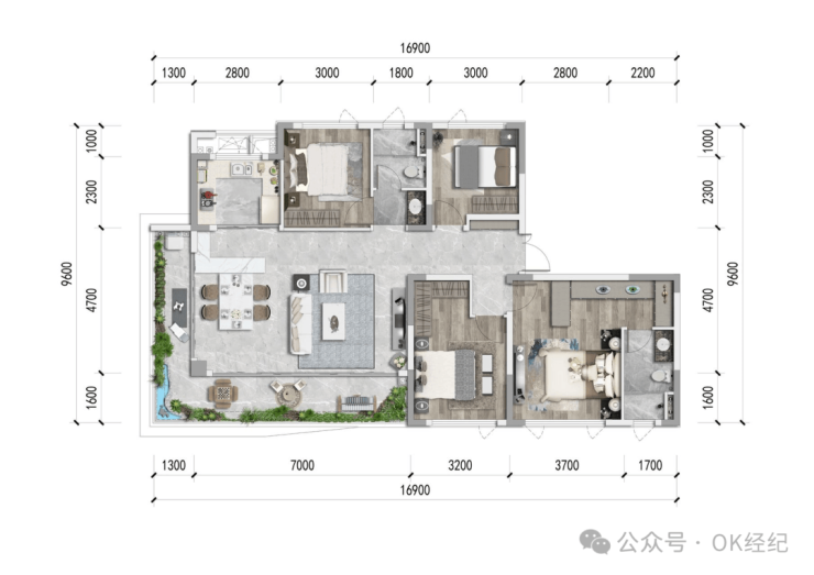 建面约128㎡板式瞰景小高 三房两厅双卫