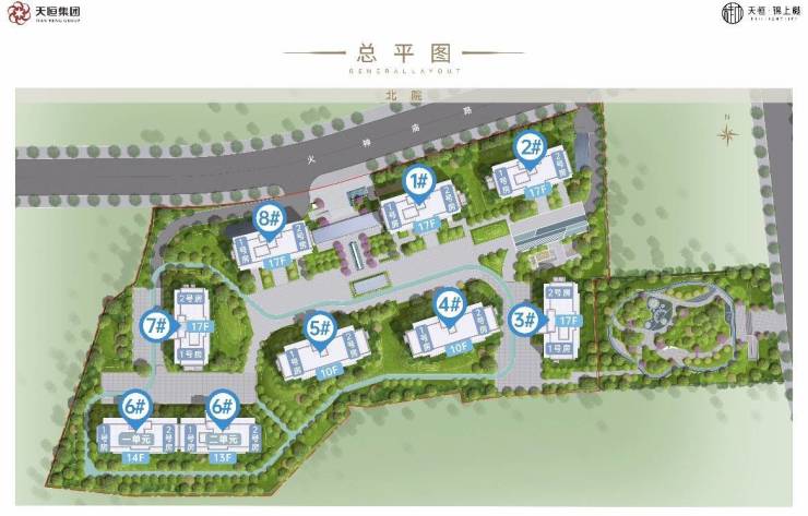 【产品规划】共8栋,1-3#6-8#栋2T2户13-17F小高层115㎡,4-5#1T2户10F洋房131平米