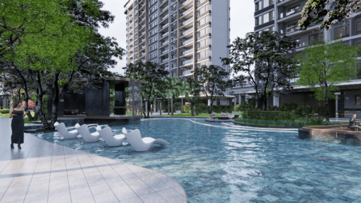 超50%中庭园林规划为水苑景观享受外有东安湖,内有园林内湖的双湖体验设计浮岛一样的水上步梯、流动形的湖岸小路、半岛式会客厅让生活宛如度假一般
