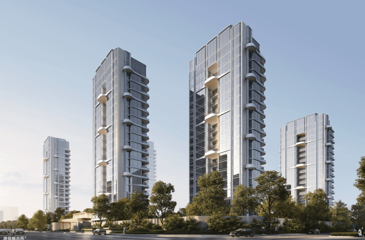 考究用材:外立面 0 漆化(铝板 + 定制陶板),甄选全球五大奢石矩阵(塞尔维亚灰大理石、迪奥金大理石等),铺陈天然奢华。