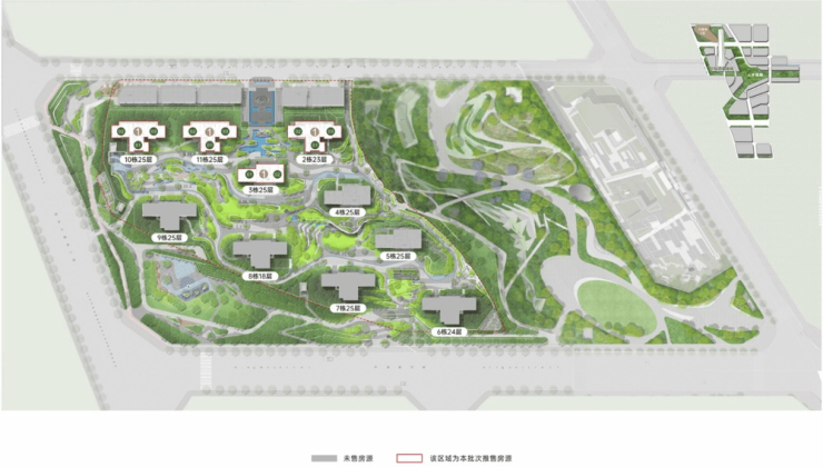 54号地块占据396米地标旁绝佳位置,三面公园环抱,打造台地式峰景社区。