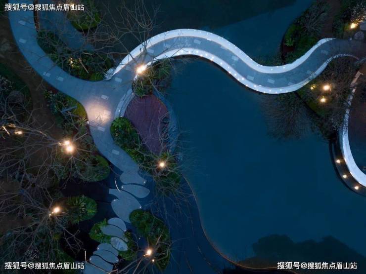 引入活水,建筑面积近1000㎡的“翡翠星湖”,穿过如飘带般架于湖中的浮桥“掠影星河”,流连于游艇会客厅和阔景草坪剧场之“双庭”,感受童趣森野乐园及全龄覆盖的“三境”场景。