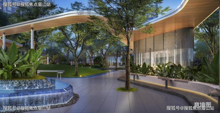 中庭园林以湖屿森境为理念,森林为底,引水环绕,“一湖一桥双庭三境”,用艺术放大自然,让建筑与自然相融生长。