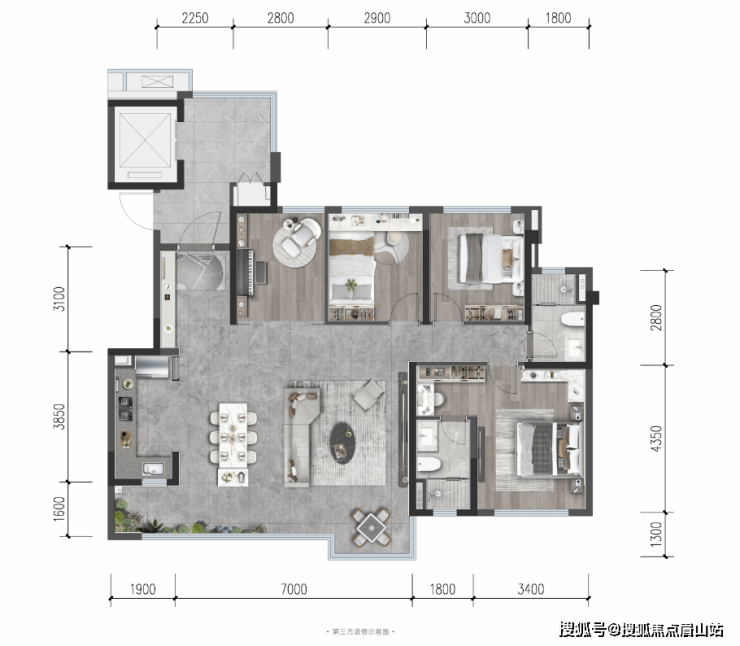 超高得房率:建面约126㎡迭代四房,打造全场景LDKG一体化大方厅,得房率超100%,空间使用更高效,足以媲美同期其他品牌140㎡+户型。