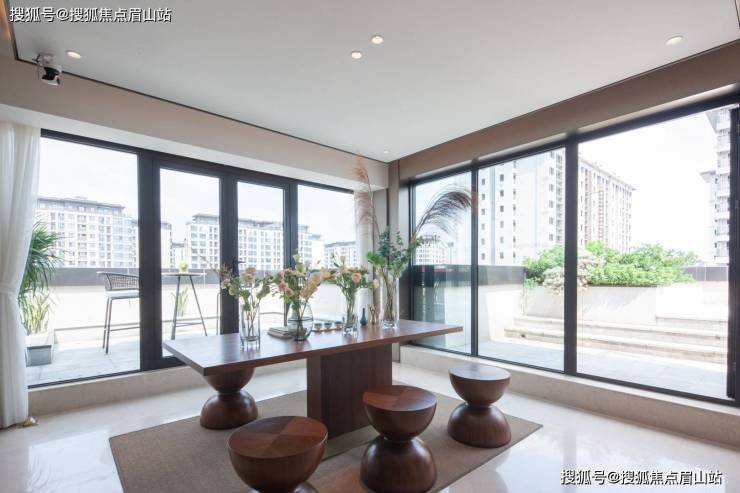 光影随处流淌,客厅连接露台,直迎风景入怀