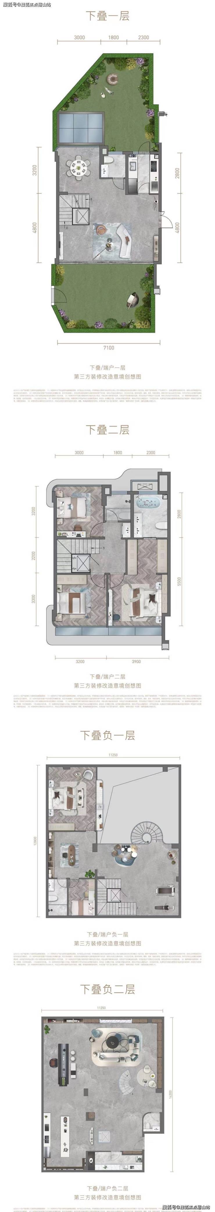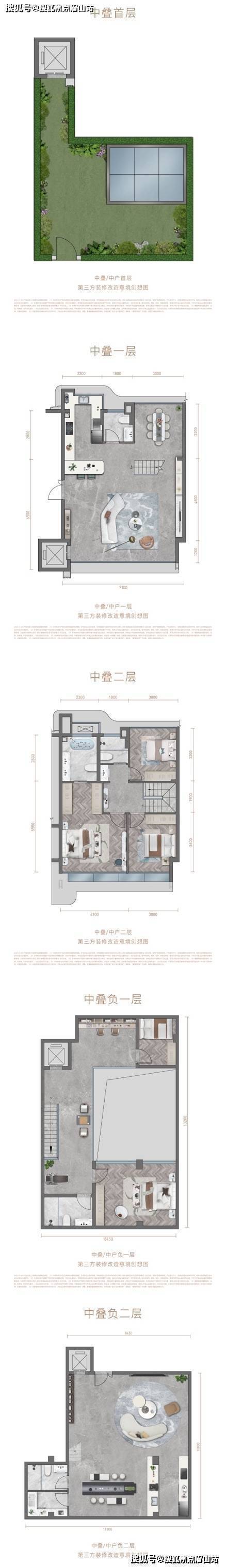 ?叠拼面积 :上叠120㎡/中叠318㎡/下叠380㎡