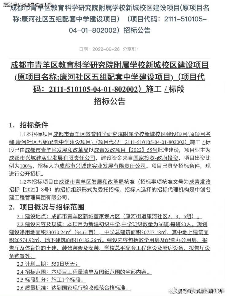 学校占地100多亩,办学规模为84个班级,其中初中48个班级,高中36个班级?这所新校区将于2024年——建校110周年之际投入使用。B:区教科院附属中学已招标